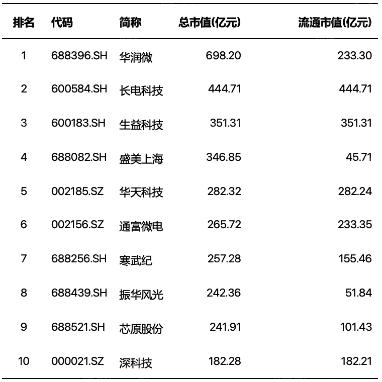 图 先进封装行业上市企业市值TOP10