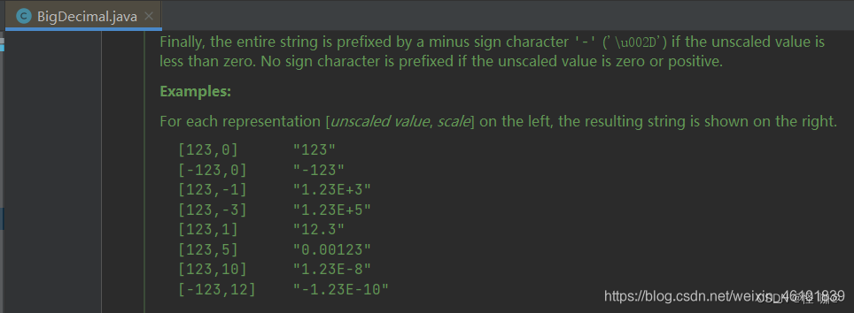 注意:toString()、toEngineeringString()方法在某些时候会使用科学计数法或工程计数法,不是所有情况都会使用科学计数法或工程计数法的