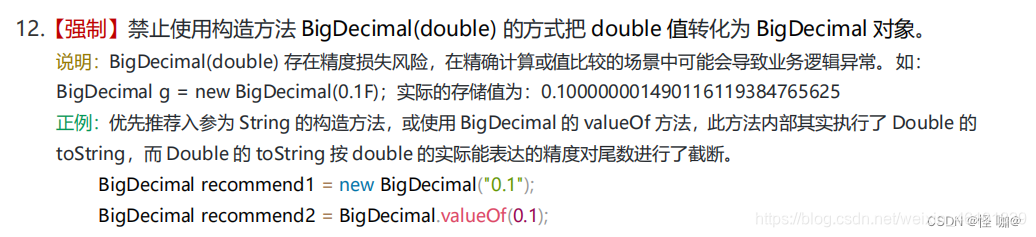 - 构造方式:在创建 BigDecimal 对象时,最好使用字符串来表示数值,以避免浮点数精度问题。例如,使用 new BigDecimal(“0.1”) 而不是 new BigDecimal(0.1)。