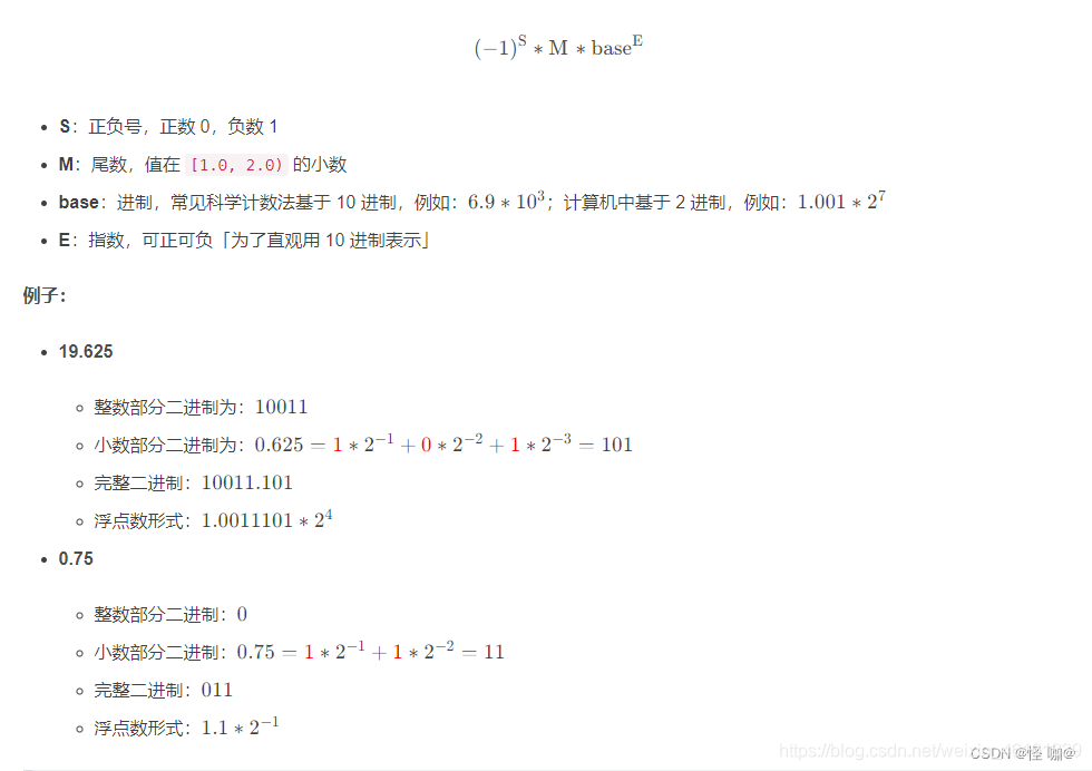 - 符号位(Sign Bit):用于表示数值的正负,0 表示正数,1 表示负数。