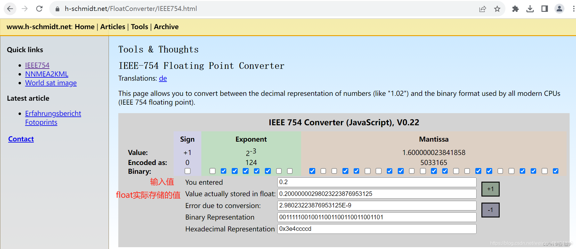 我以网上能找到的ieee 754 float32在线转换器为例,简单易懂。地址:https://www.h-schmidt.net/FloatConverter/IEEE754.html