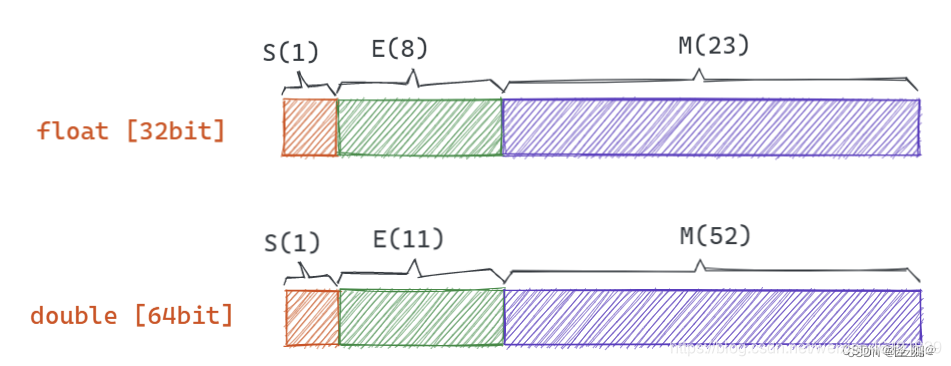 IEEE 754规定了四种表示浮点数值的方式:单精确度(32位)、双精确度(64位)、延伸单精确度(43比特以上,很少使用)与延伸双精确度(79比特以上,通常以80位实现)。其中最常用的就是32位单精度浮点数和64位双精度浮点数。对应的Java当中的float和double。