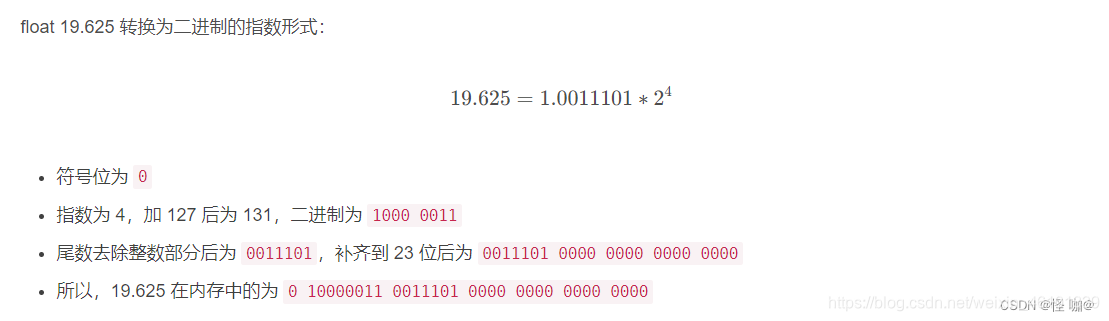 仍以 19.625 为例,将它转换为科学计数法的浮点数格式: