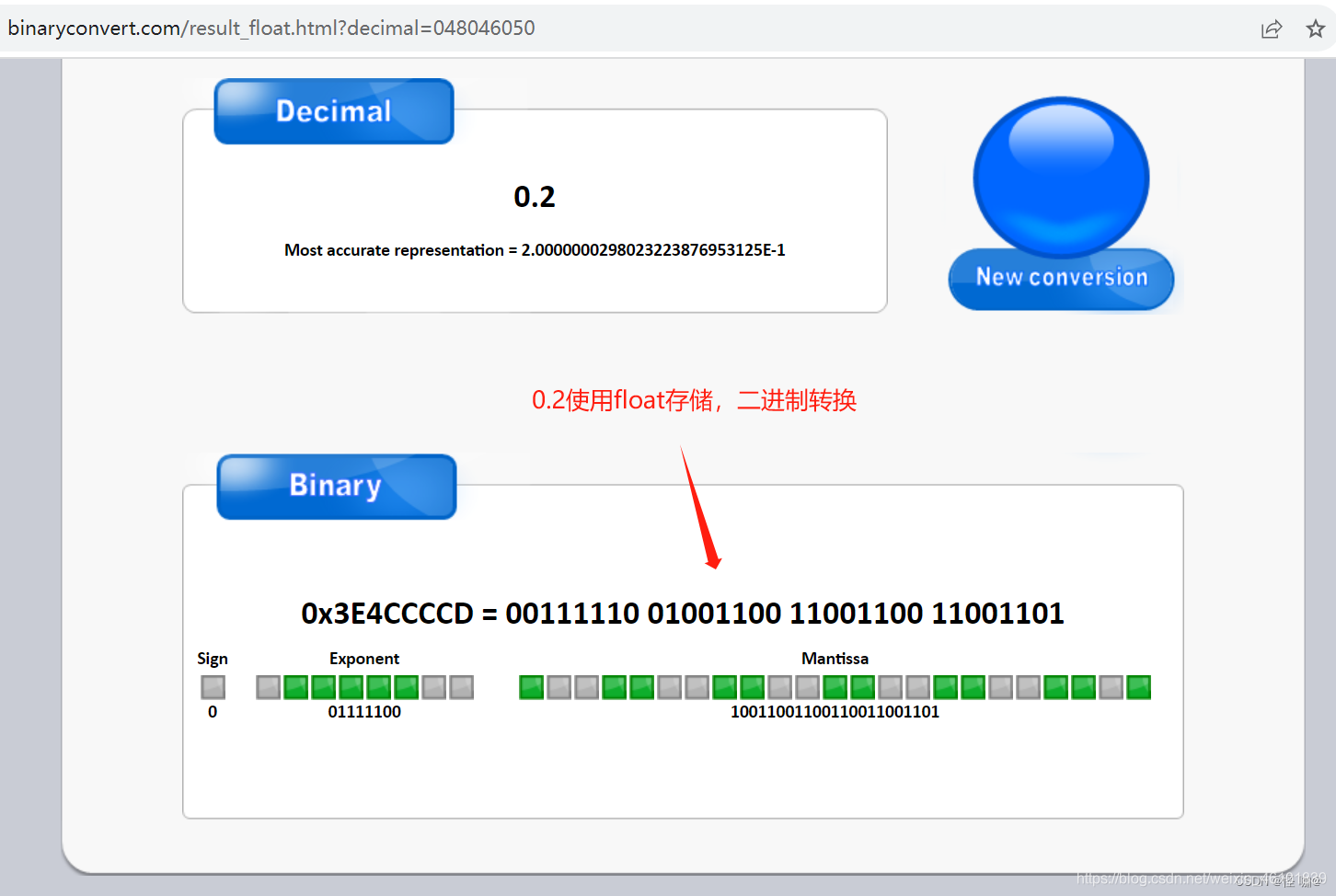 1 - 所以0.2在内存中为 0 01111100 1001100110011001100110