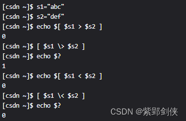 [csdn ~]$ echo $[ $s1 < $s2 ]