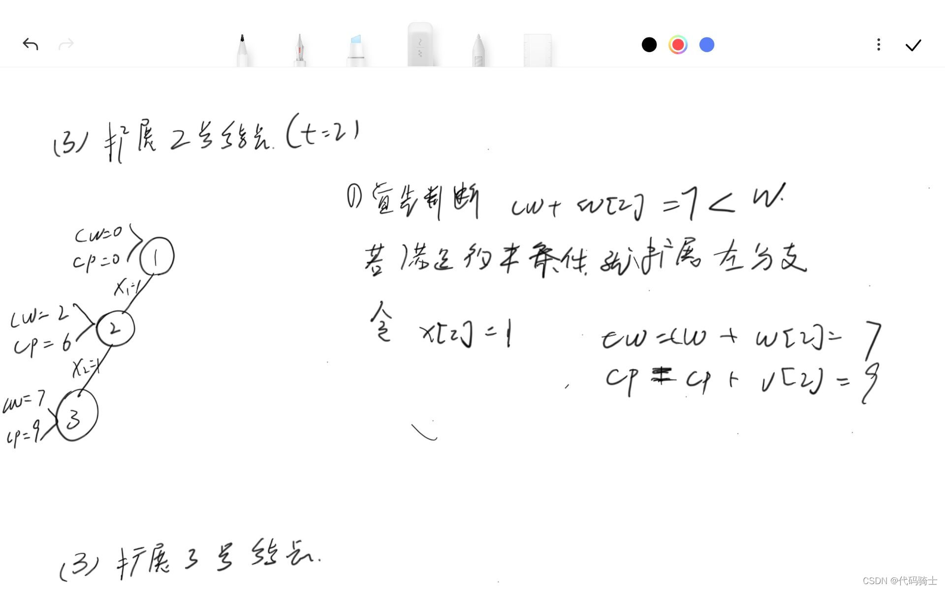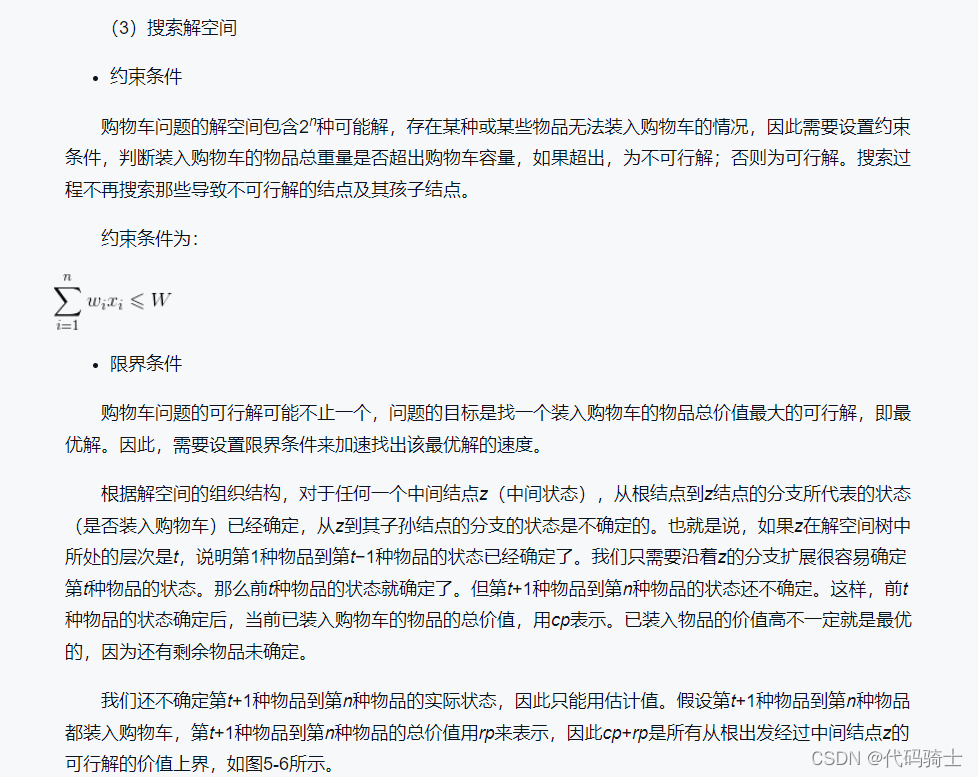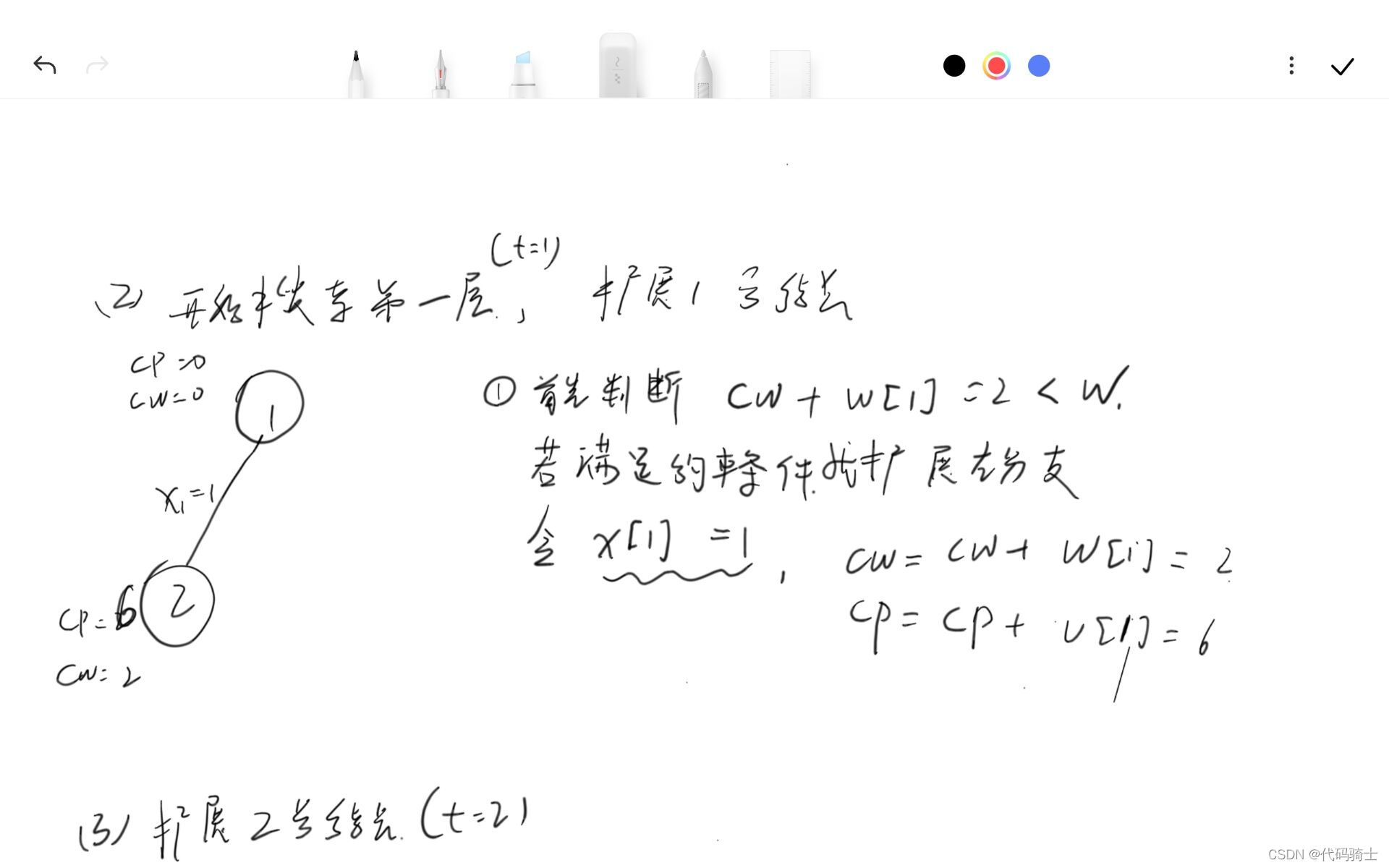 if(cw+w[t]<=W) //如果满足约束条件则搜索左子树