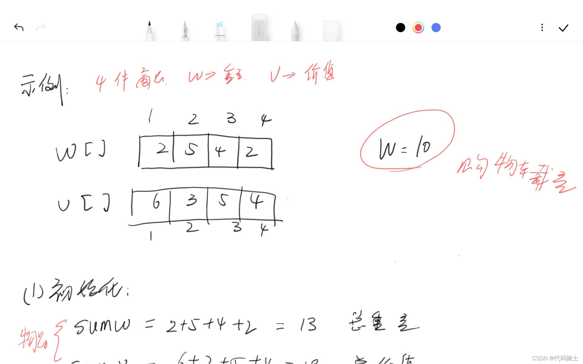 double w[M],v[M];//w[i] 表示第i个物品的重量,v[i] 表示第i个物品的价值