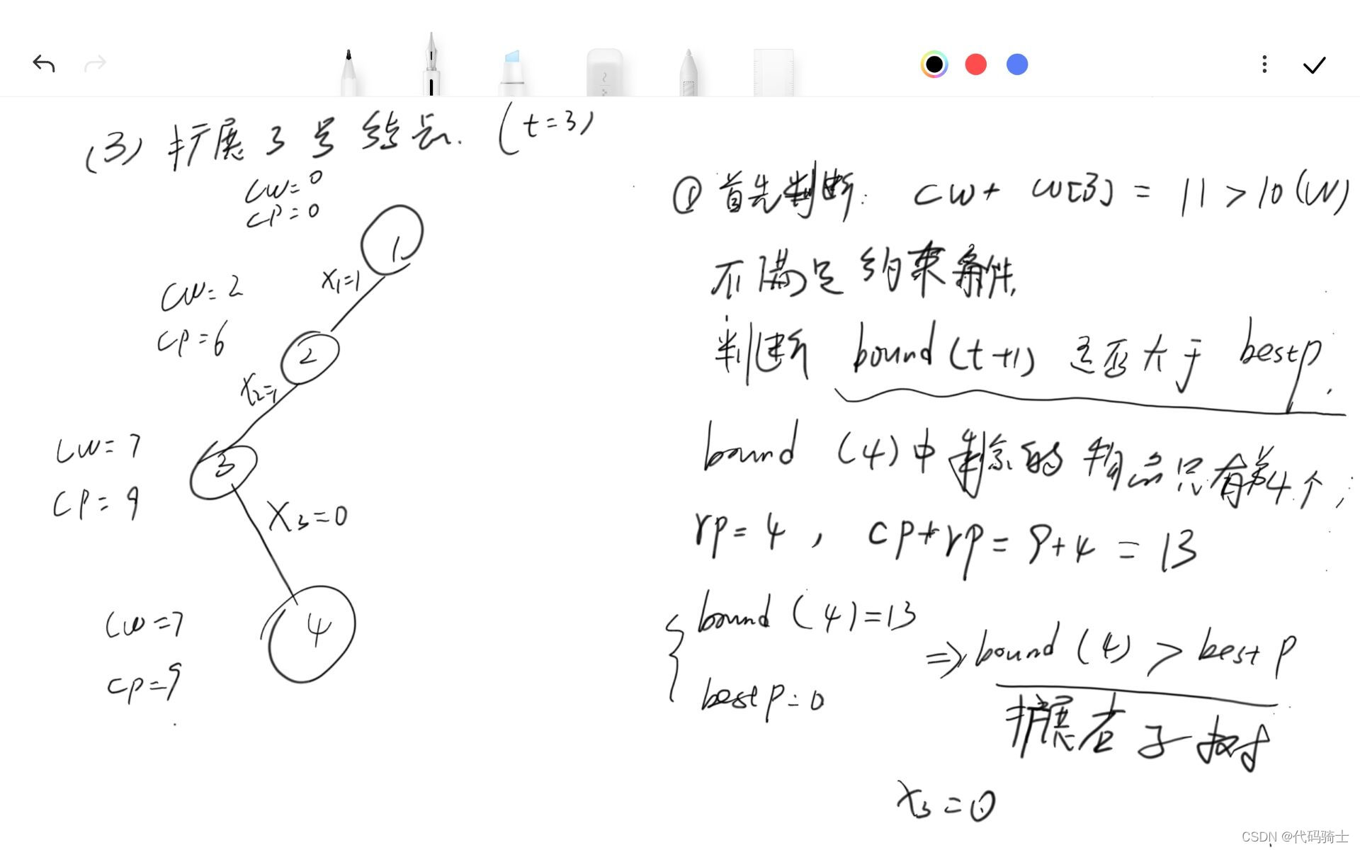 if(Bound(t+1)>bestp) //如果满足限界条件则搜索右子树