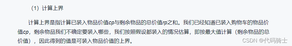 double Bound(int i)//计算上界(即已装入物品价值+剩余物品的总价值)