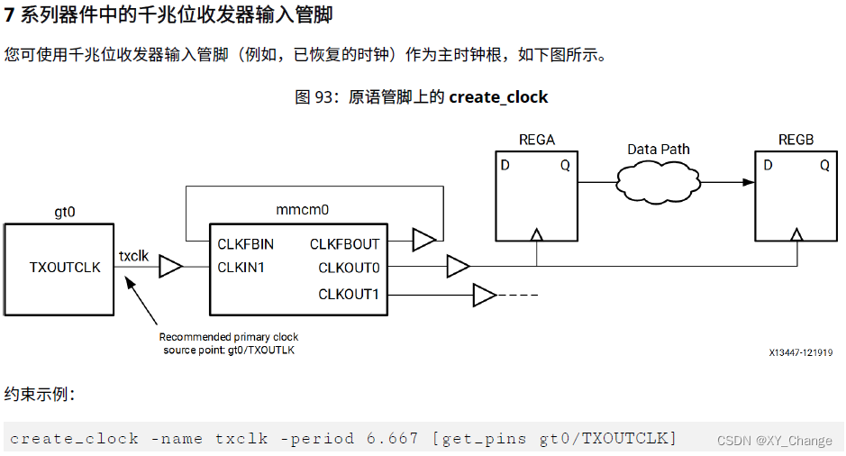 注意,不要用某些硬件原语的输出管脚创建基准时钟或者在一个时钟的扇出中使用create_clock。