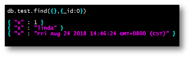 - 插入一条合法文档并使用 db.test.find({},{_id:0}) 查询结果必须如下: