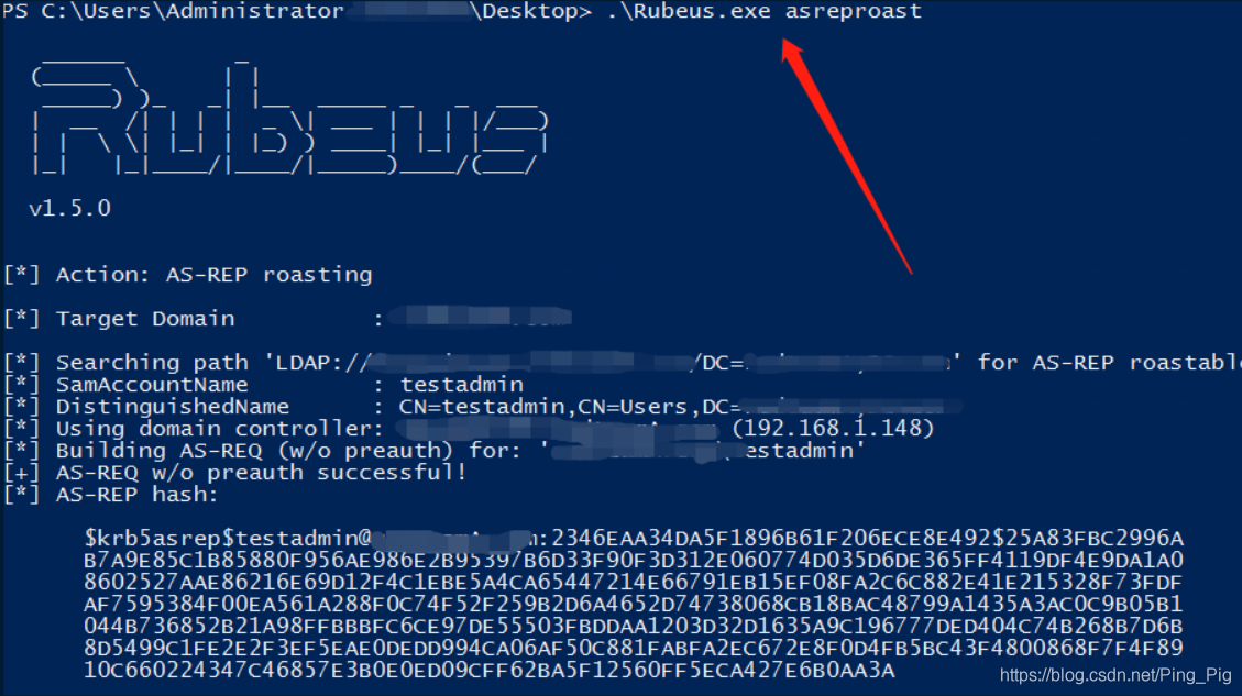 注意:笔者这里使用该ps1脚本在实验环境中并未能提取到hash,所以使用的Rubeus