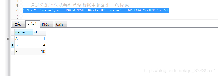 可以通过分组语句从每种重复数据中都拿出一条标识
