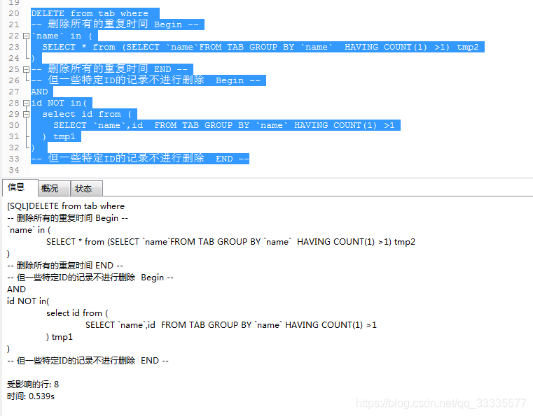 这里方法三因为用了MAX()方法(也可改用MIN()),查询结果记录的id不太一样,但也可以被视为重复多余的数据,关键是你希望选择保留哪一条记录而已。