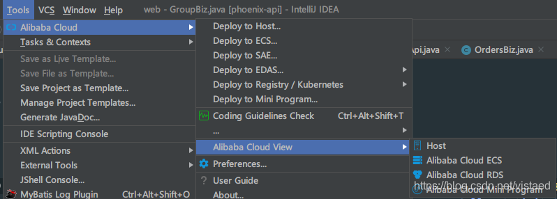 也可以通过Tools–>Alibaba Cloud–> … 的方式打开视图
