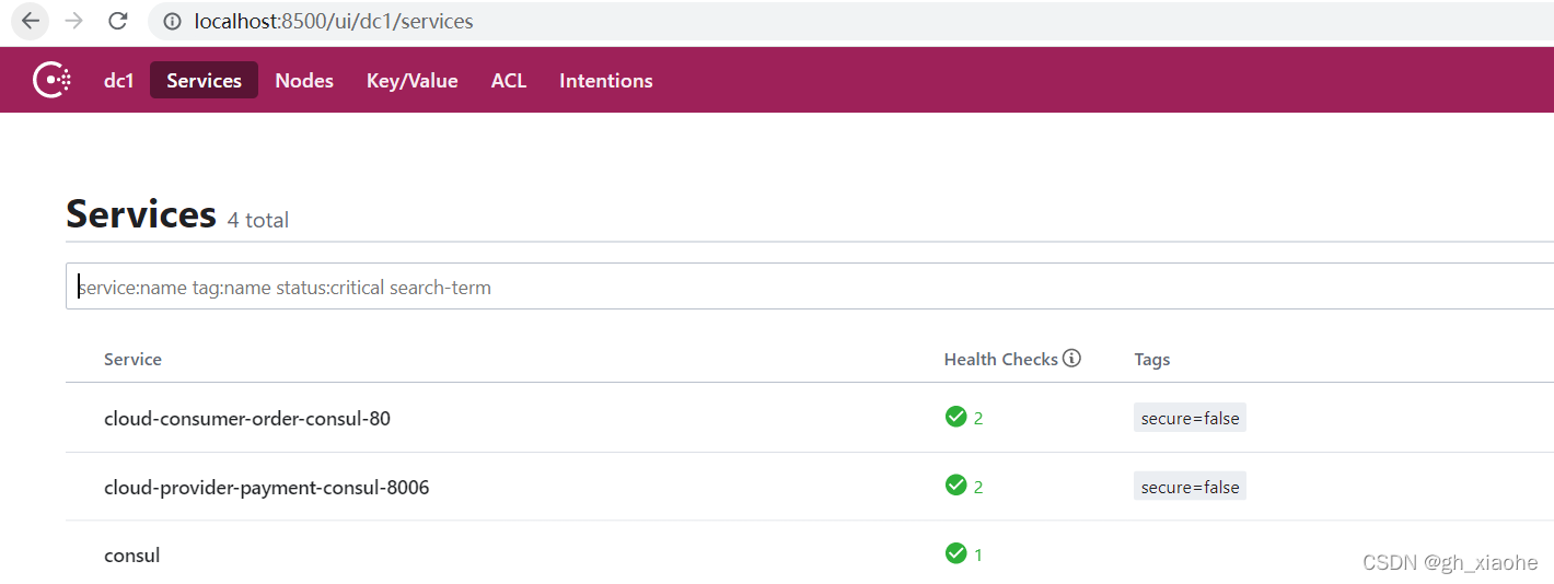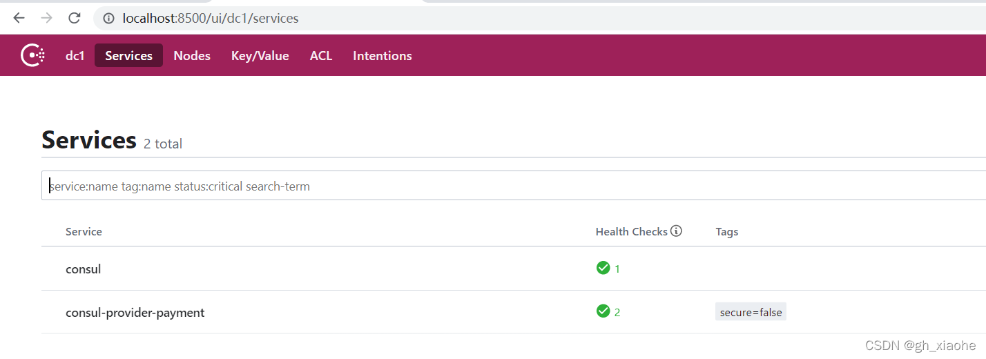 2、通过以下地址可以访问Consul的首页:http://localhost:8500