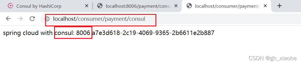 return "spring cloud with consul: " + serverPort + "\t\t" + UUID.randomUUID().toString();