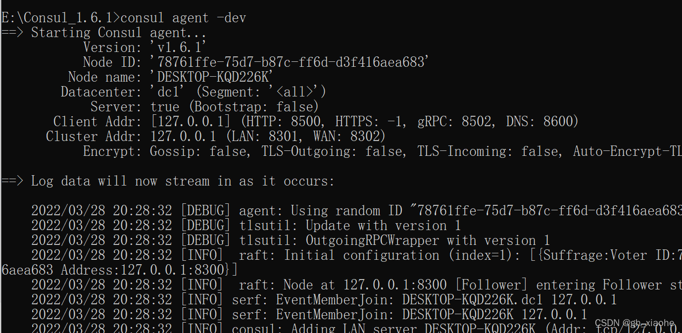 2、下载完成后只有一个consul.exe文件,硬盘路径下双击运行,查看版本号信息