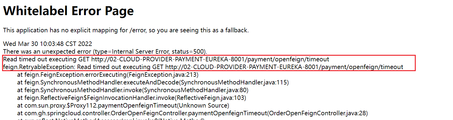原因:OpenFeign默认等待1秒钟,提供方需要3秒的时间,超过时报错
