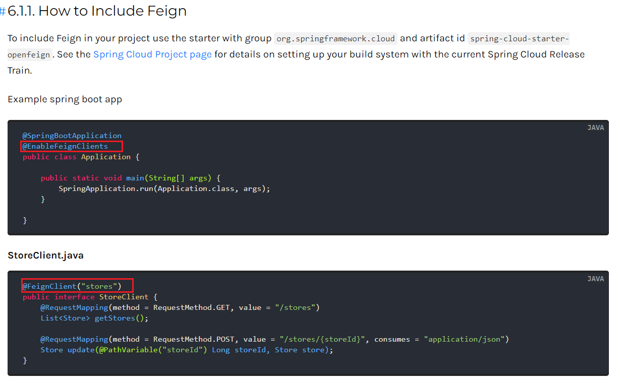 | <dependency> <groupId>org.springframework.cloud</groupId> <artifactId>spring-cloud-starter-feign</artifactId> </dependency> | <dependency> <groupId>org.springframework.cloud</groupId> <artifactId>spring-cloud-starter-openfeign</artifactId> </dependency> |