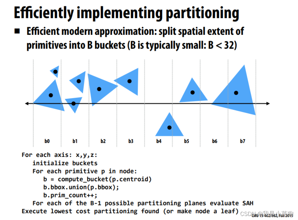 至于为什么这样的cost会解决不均匀的问题,好吧,我尝试思考了一个晚上,回答不了,想的头痛,就这样吧。因为我在思考的时候遇到了一个矛盾的点,一直想不通,擦,就是均匀意味着大的子包围盒要有更多的物体(不会有空间冗余,但是计算开销大),而这个cost方法会倾向于让大的子包围盒有更少的物体(会有空间冗余,但是计算开销小)。那你说,tmd,哪个更好呢?我擦,虽然这是简单逻辑,但其实并不好想通,也许,这就是两个矛盾的,想通不了==