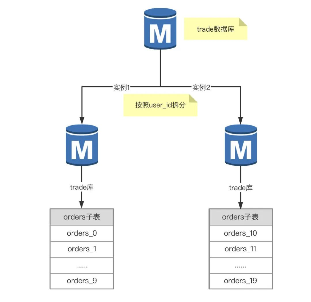 这样就可以将 orders 表拆分成20个子表,看实际业务量和需求需要拆分成多少张表。