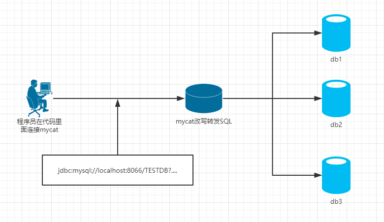 MyCat是一个基于第三方应用中间件数据库代理裤架,客户端所以的jdbc请求都必须要先交给MyCat,再有MyCat转发具体的真实服务器中。