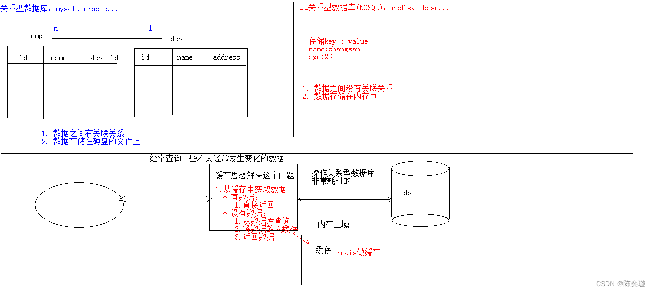 2)查询速度:nosql数据库将数据存储于缓存之中,关系型数据库将数据存储在硬盘中,自然查询速度远不及nosql数据库。