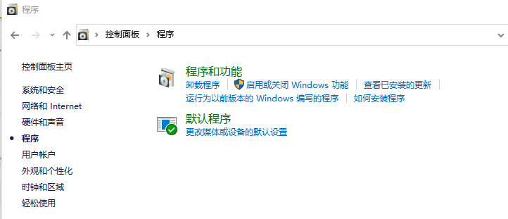 控制面板–>程序–>程序和功能–>启用或关闭Windows功能