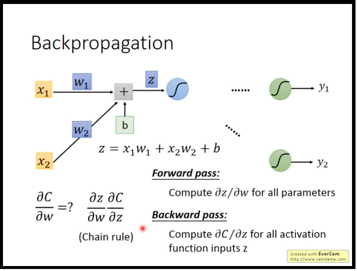 当然z对w1,w2的偏微分是秒算的,分别是x1,x2,即w对应连结的值