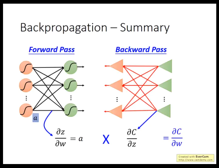 我们最后总结下,为了计算z对w的偏导,我们使用前向传播,计算出每一级输出即可