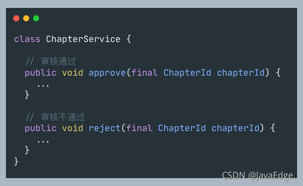代码上,既不需要新增驳回接口,也无需新增驳回服务,只需修改 Chapter 类的内部,改动量比预期的小了很多。