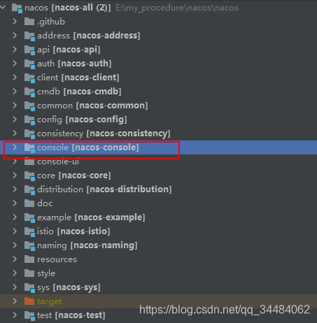 为了研究一下nacos,所以从git上下载了nacos源码并且启动。