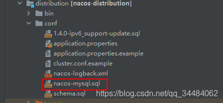 - 2.初始化mysql数据库,数据库初始化文件:nacos-mysql.sql(位置位于 nacos-distribution模块的conf/nacos-mysql.sql)