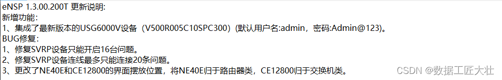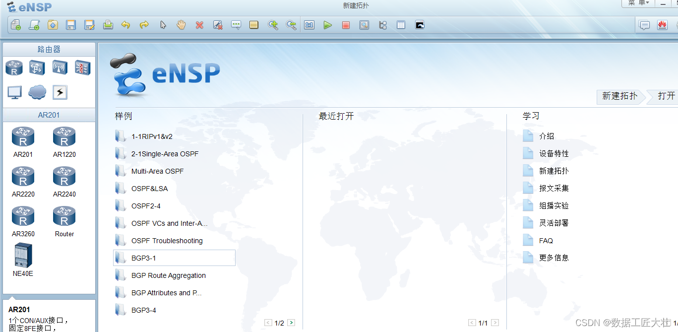 ensp是华为路由交换模拟器,目前e.huawei.com上已经下载不到,能看到的是ensp pro ,但是ensp pro相当于安装的虚拟机(配置比较大),对个人来说不是很友好,建议还是使用ensp,虽然功能少了点,但是足够用于hcia\hcip\hcie的学习。