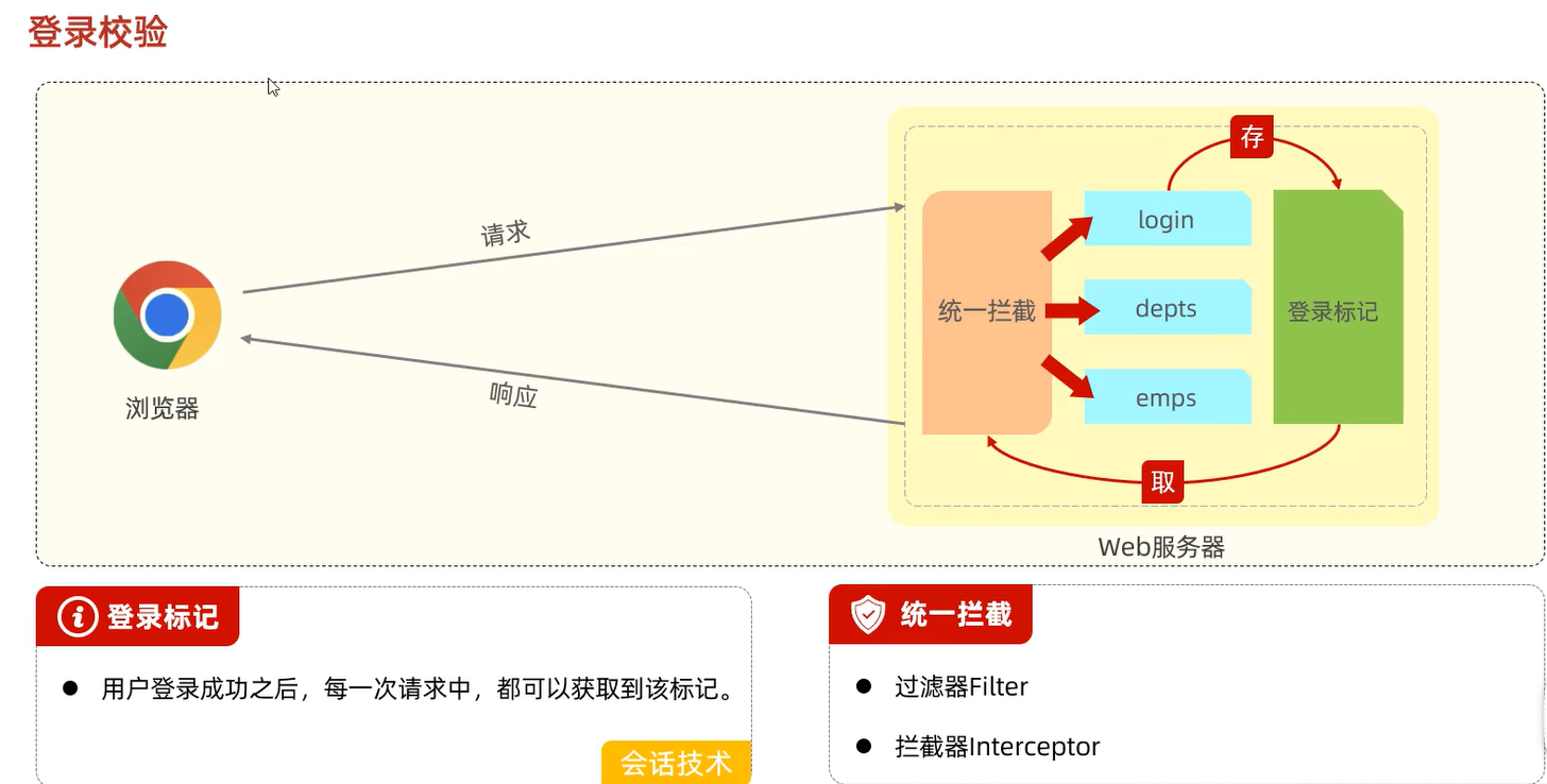 会话跟踪:一种维护浏览器状态的方法,服务器需要识别多次请求是否来自于同一浏览器,以便在同一次会话的多次请求间共享数据。