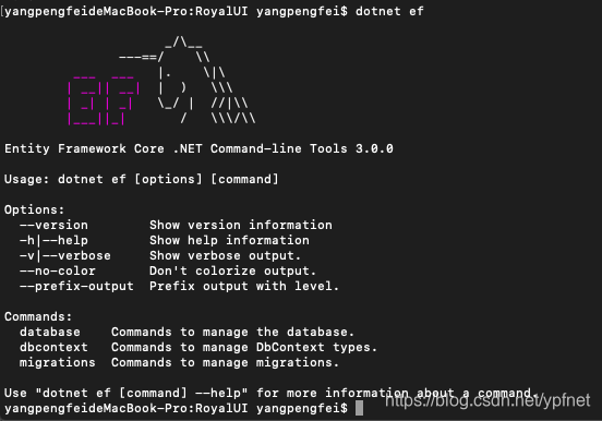 当时我的苹果电脑中安装的是.net core 3.0,ef core的工具不知道有没有。后来在使用ef core的命令时,一直都在报错。经过多次解决还是不能使用数据迁移。
