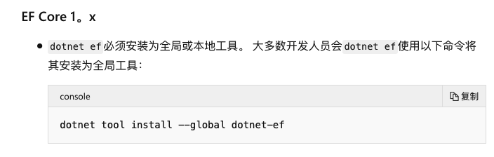 其实最开始我也是翻阅了微软大量的文档(EF Core 工具参考 (.NET CLI) - EF Core | Microsoft Learn),像下面这样的文档就是在误导我们。