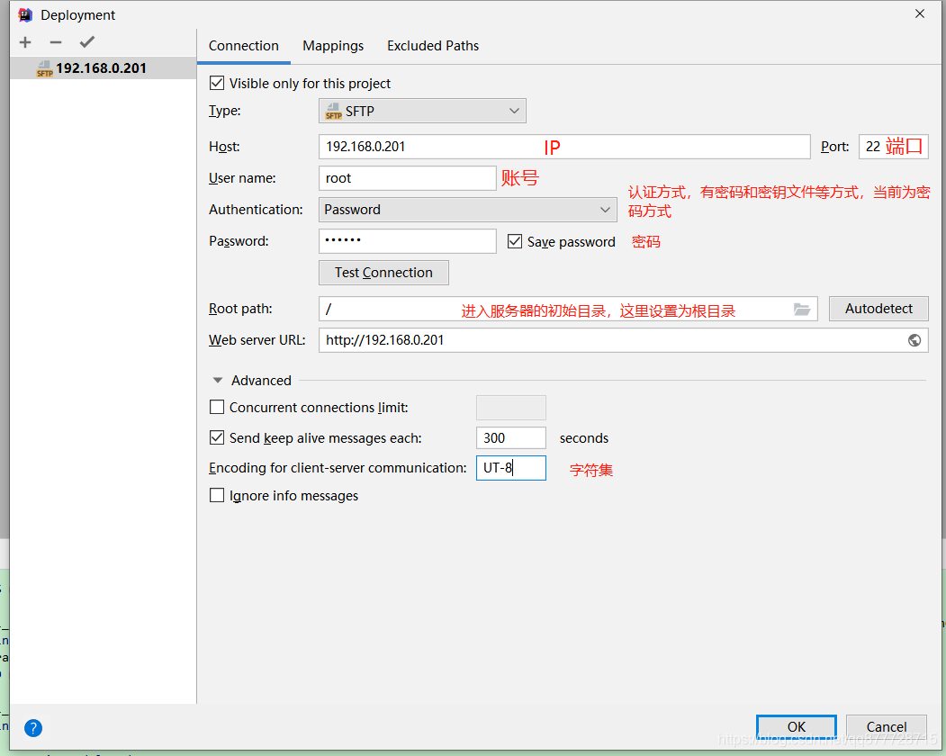 1.打开连接远程服务器信息:Tools->Deployment->Configuration