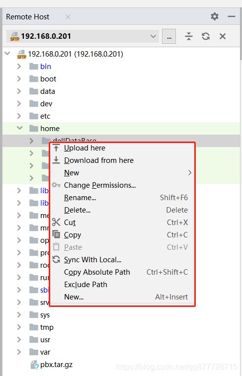 也可以通过项目右击Deployment上传文件到服务器,此时文件会上传到之前 Deployment path 映射的目录下。
