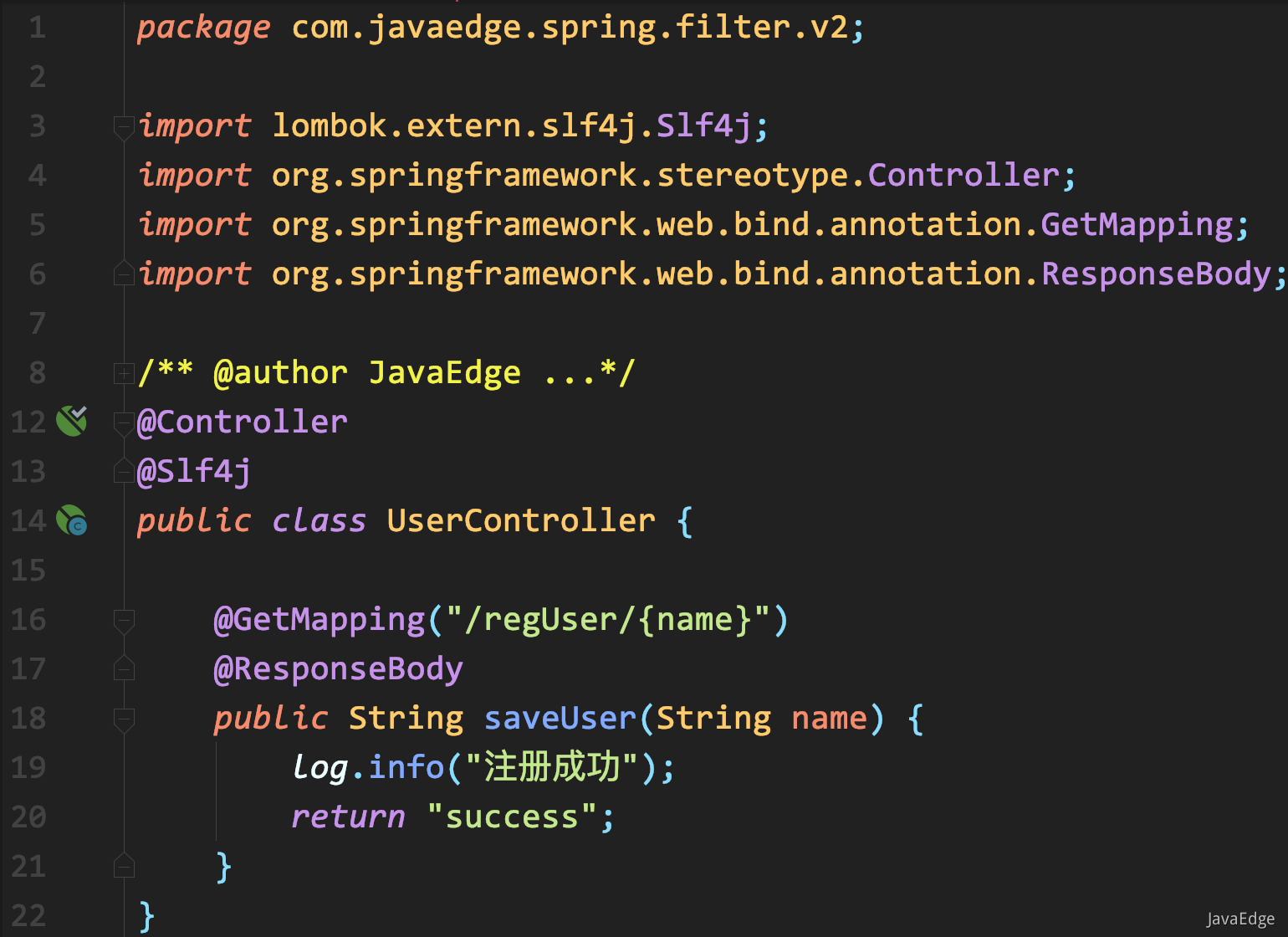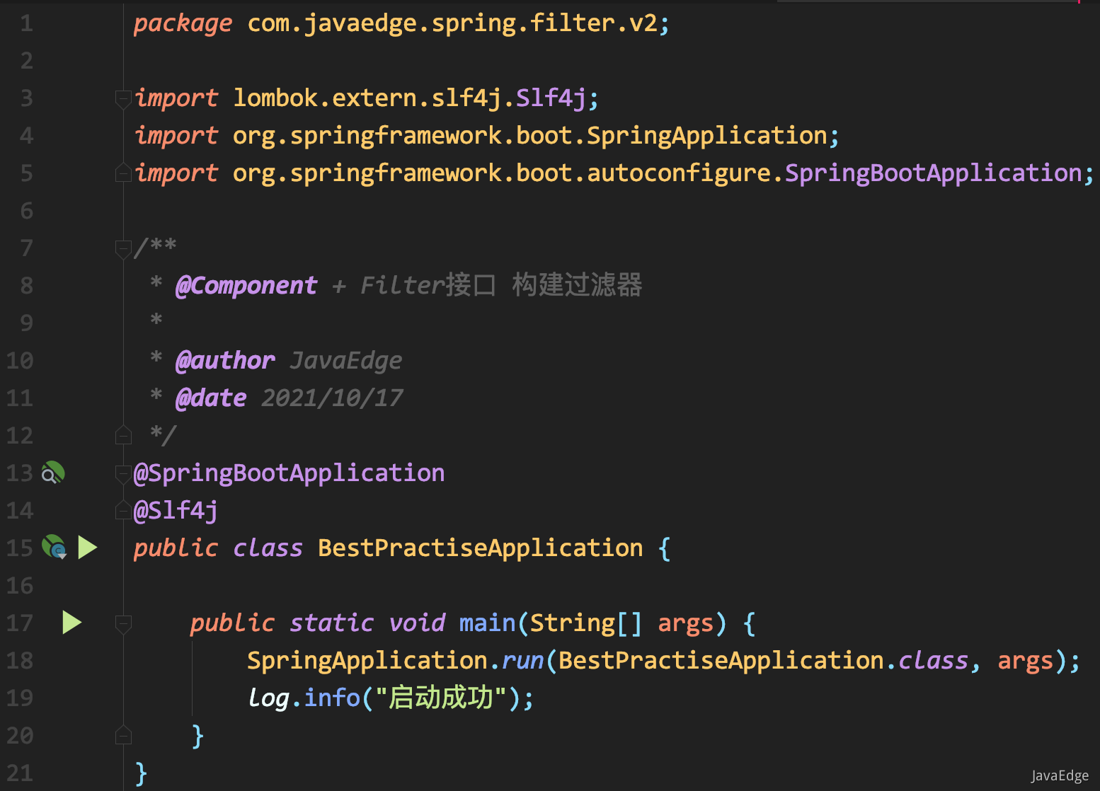 若要求构建的过滤器针对全局路径有效,且无任何特殊需求(主要针对 Servlet 3.0 的一些异步特性),则完全可直接使用 Filter 接口(或继承 Spring 对 Filter 接口的包装类 OncePerRequestFilter),并使用**@Component** 将其包装为 Spring 中的普通 Bean,也可达到预期需求。
