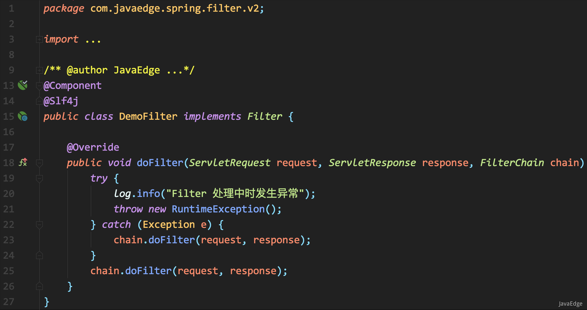 使用过滤器时,切忌多次调用 FilterChain#doFilter() 。