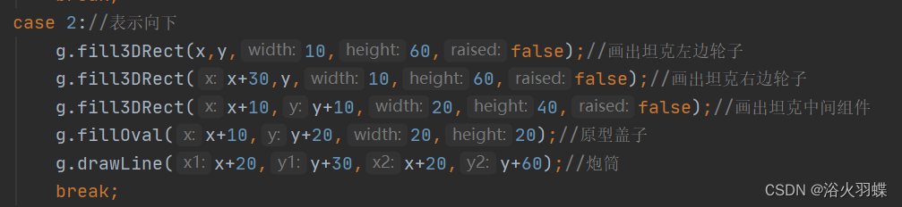 drawTank(hero.getX(),hero.getY(),g,0,0);//调用方法来挥之坦克