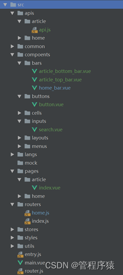 新增详情页面,需要配置路由,以便页面跳入;在这里详情页面应该配置成一级路由,在src/routers/home.js文件中更改: