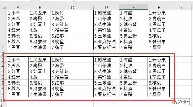 (4)选中整个表格中的内容Ctrl+C复制,然后回到Excel中,单击A3单元格按Ctrl+V粘贴,完成整个内容的拆分。