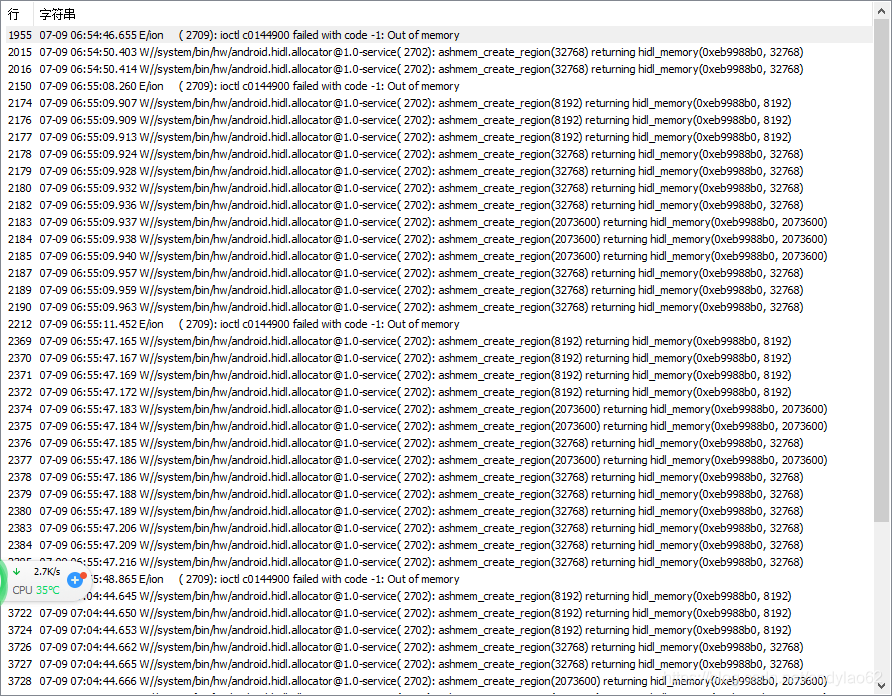 我们自己测试到高频卡顿现象,首先看到的日志是内存溢出,还有出现很多