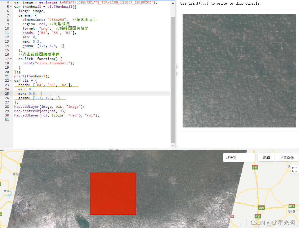 A fixed-size thumbnail image generated asynchronously from an ee.Image.