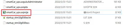 1.双击打开工程源码文件夹的MDK-ARM文件夹下“smartCar_ups.uvprojx”keil5工程文件。