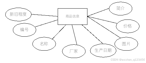 - 商品的ER图里的属性有商品编号、名称、厂家、生产日期等,商品的ER图如下图3-4所示: