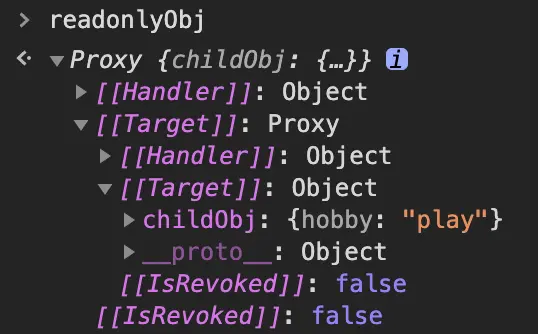 const { proxy, revoke } = Proxy.revocable(targetObj, {});